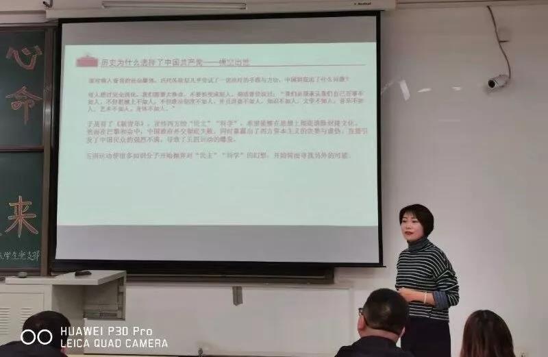 郭老师以“不忘初心、牢记使命”为主题,围绕“中国共产党从哪里来”为主线为支部成员讲诉了共产党从1921年7月到新中国成立所经历的磨难。郭老师先从1921年7月的仅有13位党员代表参会的中共一大开始,讲述中国共产党人步履维艰的探索。由中共二大提出了联合全国一切革命党派,联合资产阶级民主派,组织民主的联合战线,到蒋介石的四一二反革命政变,无数共产党人遭到了惨无人道的屠杀与背弃,再到南昌起义、秋收起义,中国共产党找到适合中国革命的路线“农村包围城市,武装夺取政权”。好不容易出现的星星之火可以燎原之势,却又出现了五次重大险情令共产党陷入危急存亡的时刻。遵义会议,确立了中国共产党新的领导班子,结束了博古、李德“左”倾错误军事路线,确立了毛泽东及其正确军事路线的领导,是中共党史上生死攸关的转折点。之后又进行了伟大的长征,长征历时的13个月零2天里,纵横了11个省份,长驱二万五千里,翻越了18座山脉,走过了600里草地,跨过了24条河流,经历了大小300多次战斗。在当时的艰难困苦中,共产党人以顽强的革命意志和坚定的信仰走了过来。