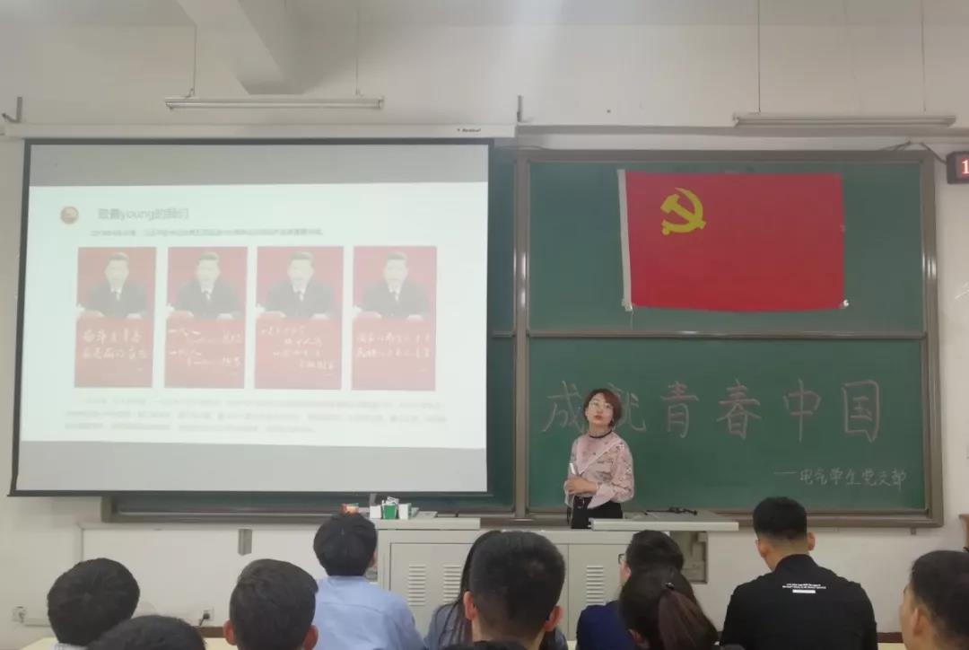 为了纪念五四运动一百周年,电气员工党支部书记郭聪如老师于2019年5月10日中午12:30在逸夫楼G403开展了“以青春之我,成就青春中国”为主题的党课,党支部全体成员聆听了本次党课。
